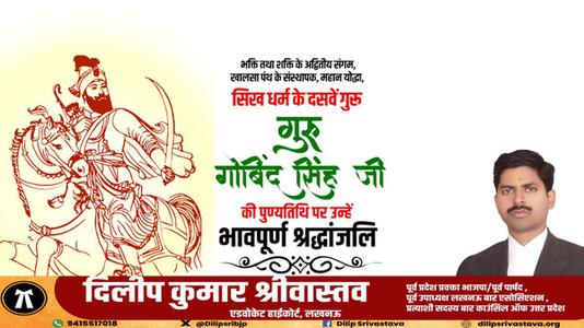 दिलीप श्रीवास्तव-गुरु गोविन्द सिंह जी   की पुण्यतिथि पर विनम्र श्रद्धांजलि