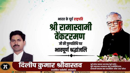 दिलीप श्रीवास्तव-भारत के पूर्व राष्ट्रपति श्री रामास्वामी वेंकटरमण जी   की पुण्यतिथि पर विनम्र श्रद्धांजलि