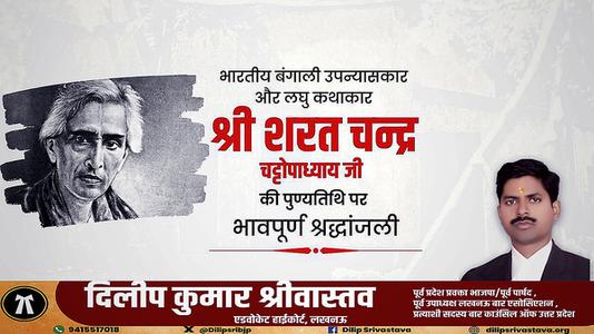 दिलीप श्रीवास्तव-कालजयी कृति 'देवदास' के रचनाकार, सुप्रसिद्ध उपन्यासकार, लोकप्रिय लेखक श्री शरत चंद्र चट्टोपाध्याय जी की पुण्यतिथि पर विनम्र श्रद्धांजलि